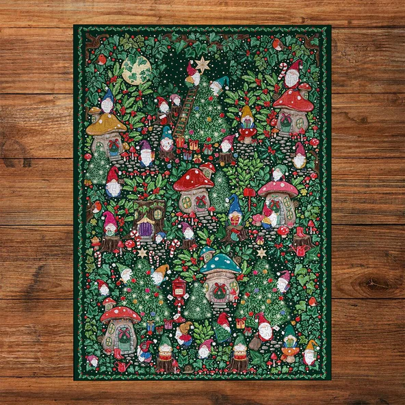 Būkite sužavėti Kalėdų kaimelio 1000 detalių dėlionės, trykštančios šventiniu žavesiu. Šioje spalvingoje scenoje, kurioje žavingi Gnomai gyvena jaukiuose, spalvinguose grybų nameliuose.