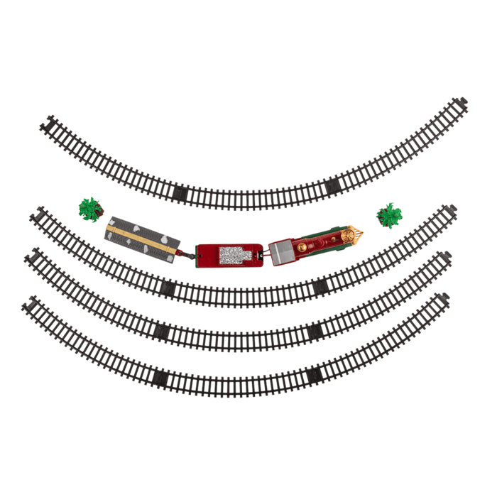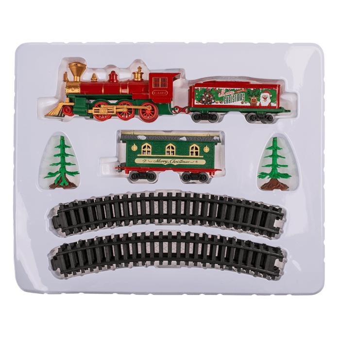 Kalėdinis elektrinis traukinys su bėgiais. Rinkinys iš 17 įrenginių Kalėdinis elektrinis traukinys su bėgiais. Rinkinys iš 17 įrenginių Kalėdinis elektrinis traukinys su bėgiais. Rinkinys iš 17 įrenginių