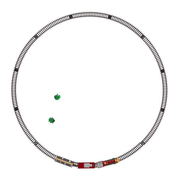 Traukinuko rinkinys, įskaitant bėgius, garvežį, tenderį, vagoną ir eglutes, su lemputėmis ir garsais, 2 x AA baterijomis