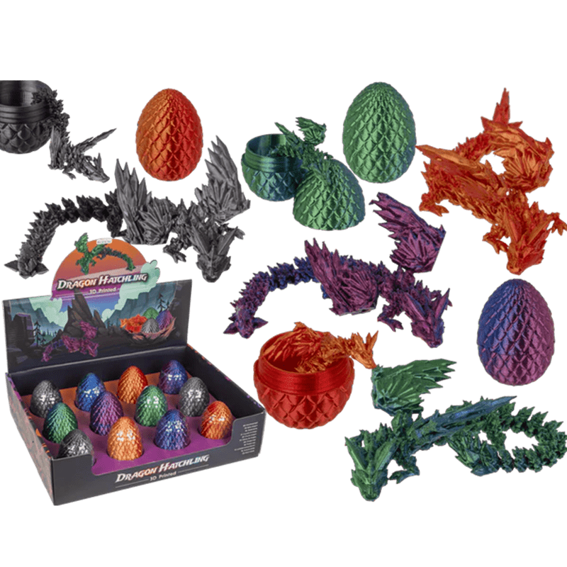 Įmantrūs 3D dizainai – kiekvienas 3D spausdintuvu atspausdintas kiaušinis trykšta įmantriomis detalėmis – žvynuotomis tekstūromis, žvilgančiais raštais ir žaismingomis uodegomis. Vaikams patiks juos atidaryti, kad atrakintumėte savo naująjį drakono kompanioną!