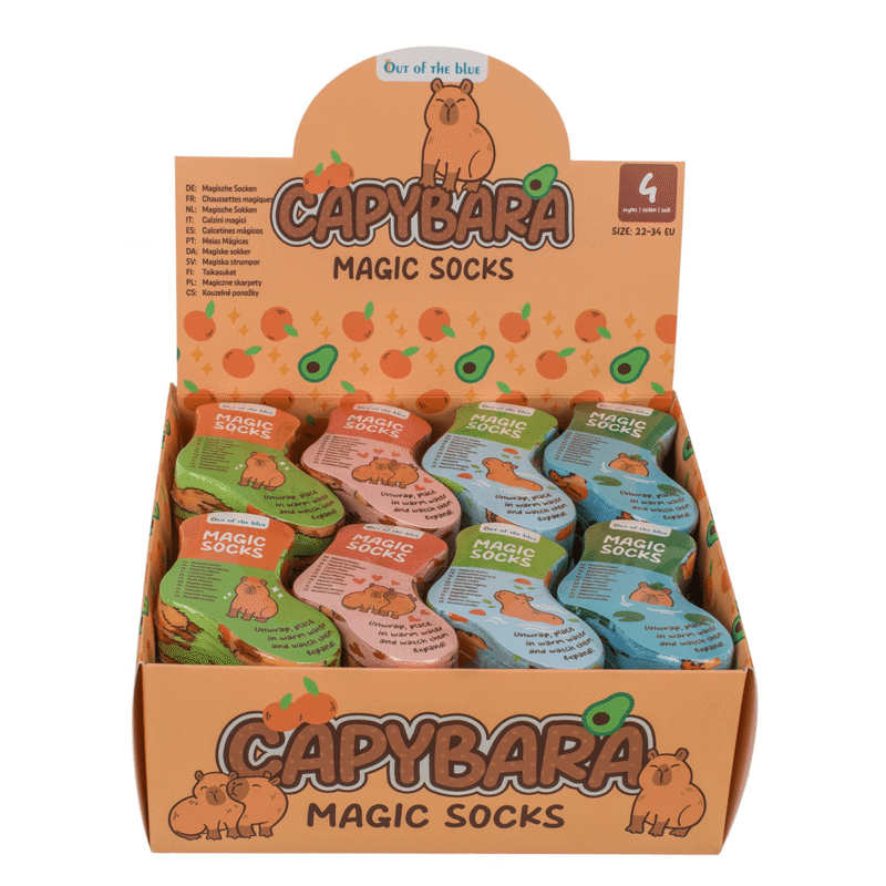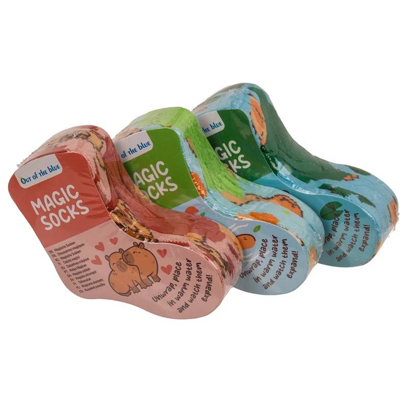 Tiesiog trumpam įmerkite suspaustą magiškų kojinių porą į vandenį ir kojinės išsiskleis iki pilno dydžio!