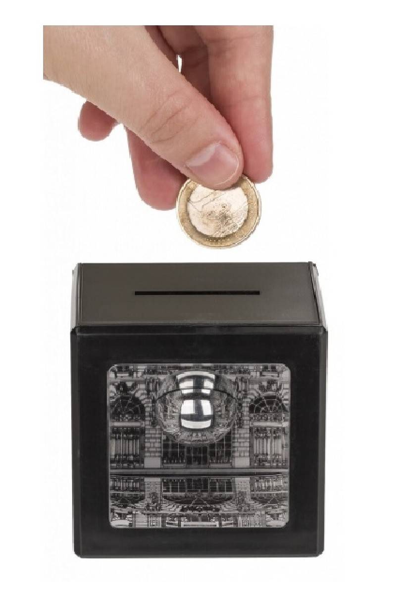 Magiška, modernaus dizaino taupyklė į kurią įdėtos monetos tampa nematomomis.