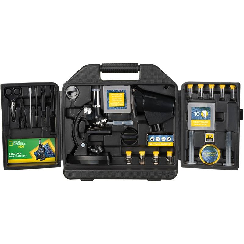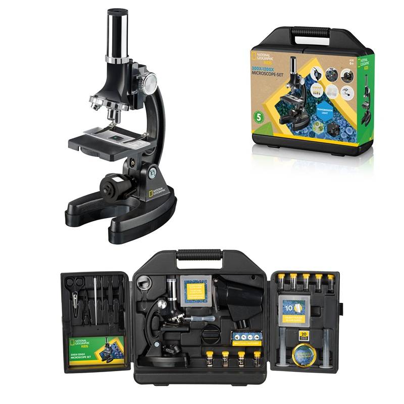 Mikroskopas National Geographic 300-1200x su priedais, lagamine
