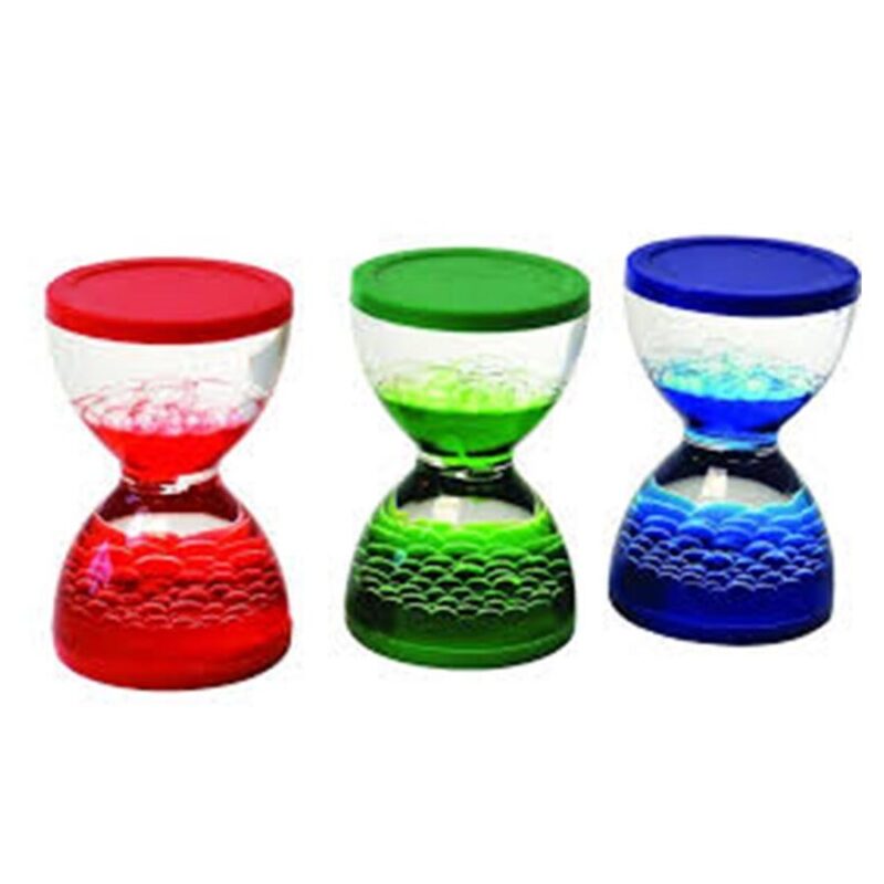 Žaismingas skysčio laikrodukas, kuris mokys orientuotis koks užsiėmimas gali trukti minutę su puse.
